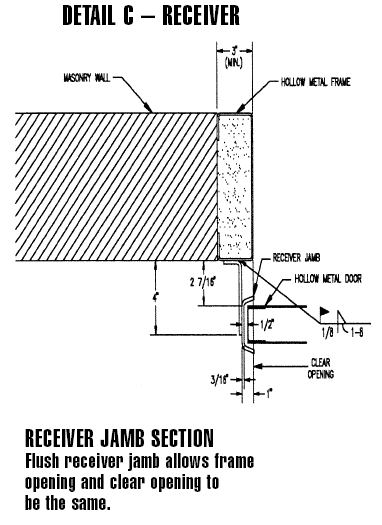 release mounted in a full-height pilaster adjacent to the receiving jamb.